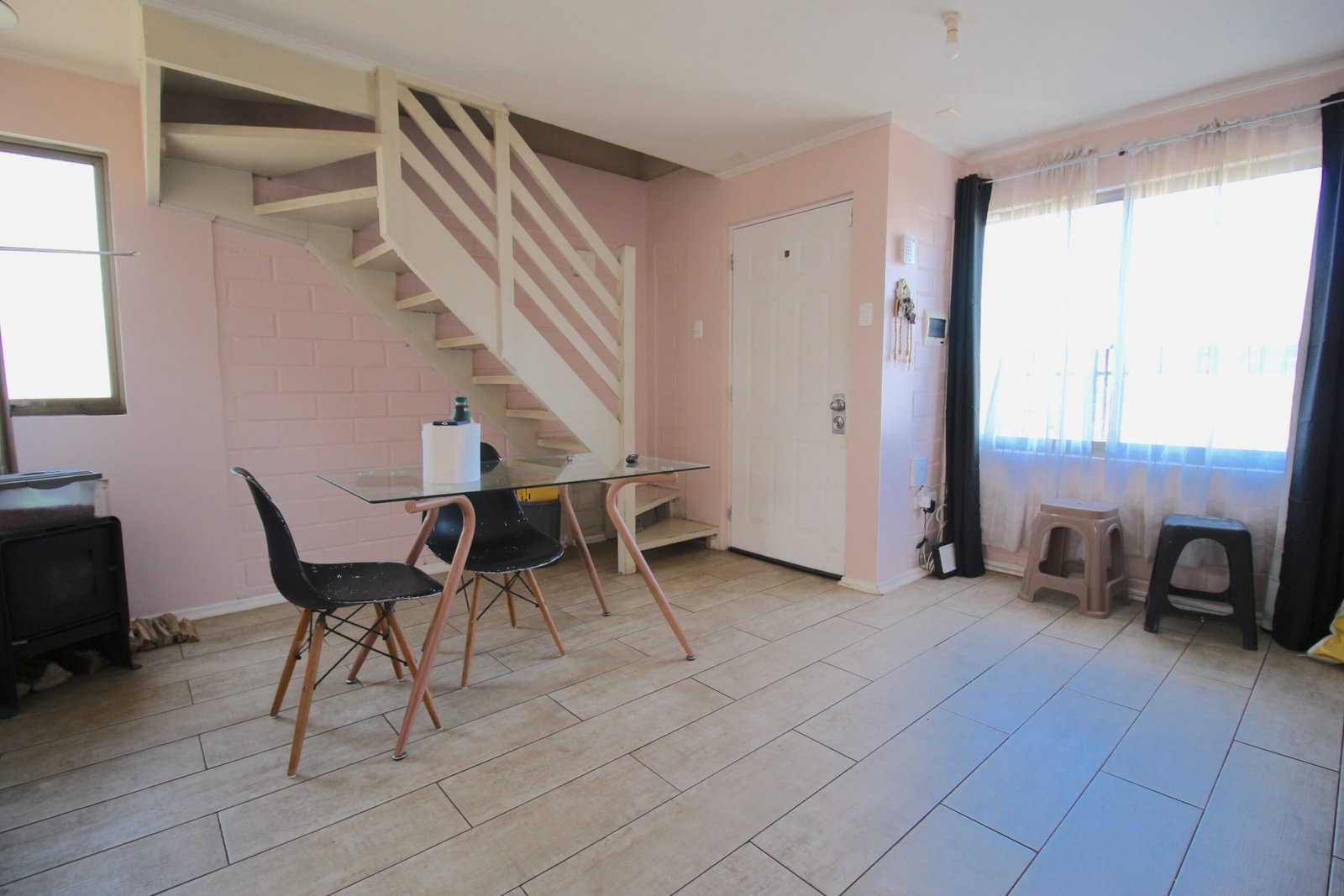 1° piso: Estar comedor juntos, cocina y 1 dormitorio pequeño u oficina/ 2 º piso: 2 dormitorios y 1 baño/ Estacionamientos: 1 descubierto, antejardín y patio trasero.